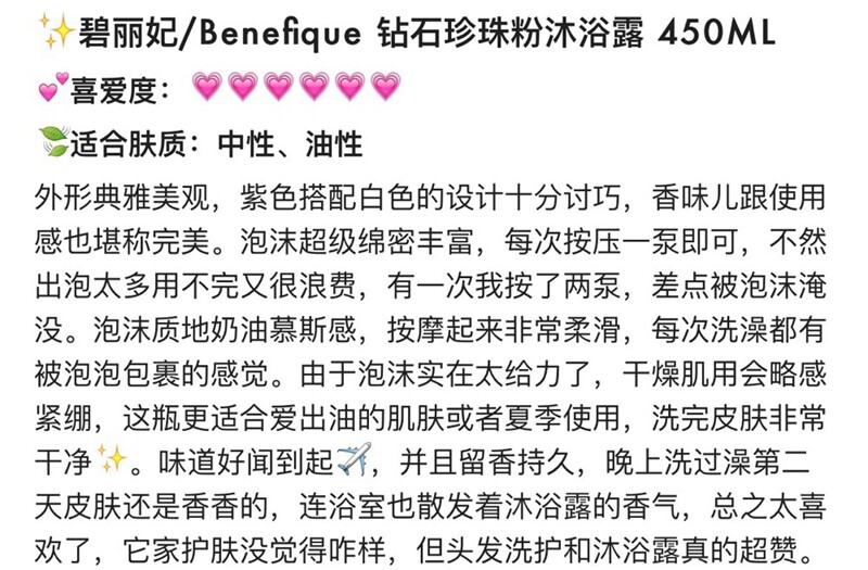 资生堂BENEFIQUE碧丽妃钻石和珍珠粉沐浴露