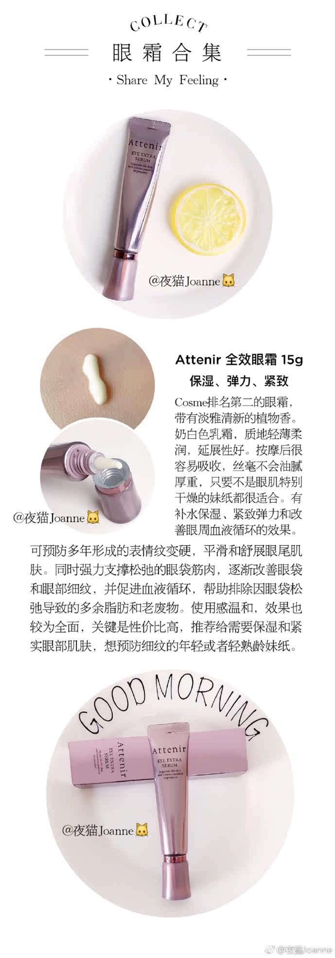 这是一款性价比很高的眼霜,在2016Cosme 大赏排名中仅次于Pola的高效眼霜,价格却不到pola的1/5。含泪推荐,抹上立刻吸收。